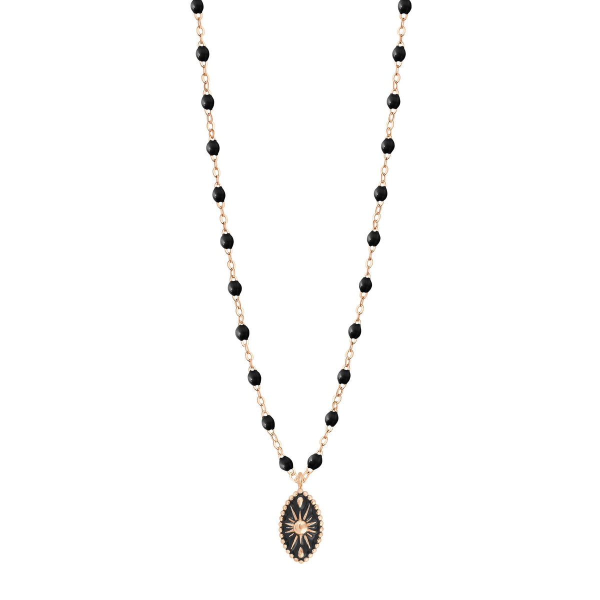 Le Collier Karma gigi Clozeau en or rose 18 carats se dévoile sur la chaîne classique gigi, ponctuée d’élégantes perles de résine noire. Son pendentif au contour finement perlé incarne un talisman précieux, à la fois protecteur et lumineux.