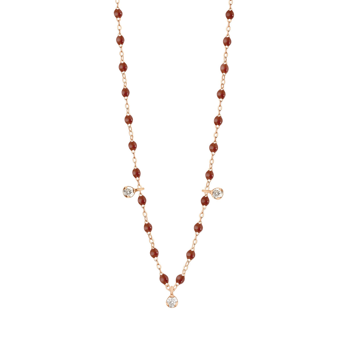 Collier moka Gigi Suprême, or rose, 3 diamants, 45 cm