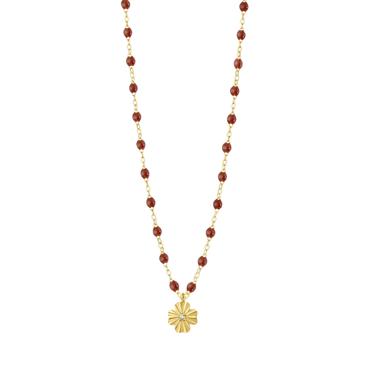 Gigi Clozeau - Collier moka Trèfle Lumière, diamant, or jaune, 42 cm