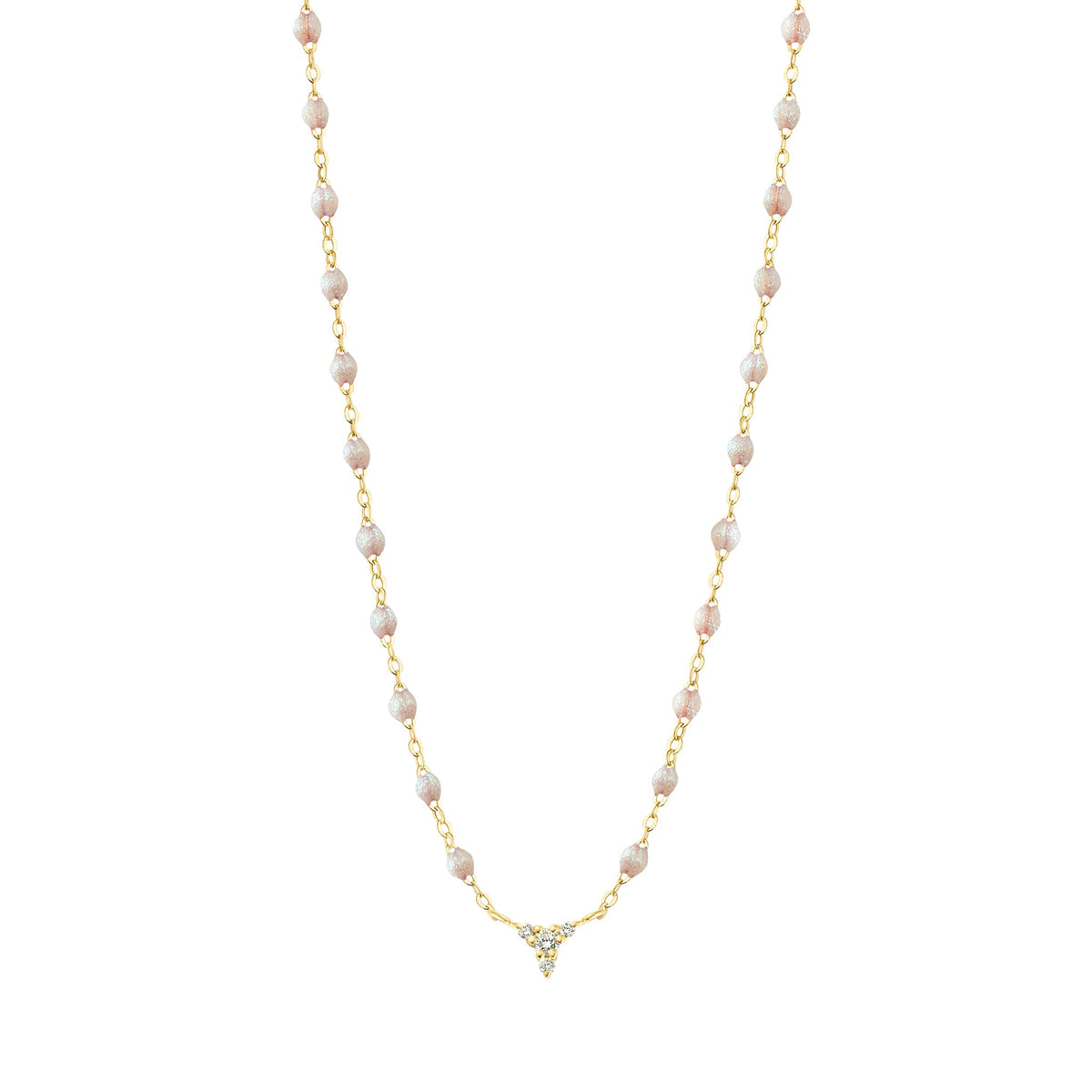 Collier petit Kosmos en or jaune 18 carats, 4 diamants et perles de résine. 3 diamants de 0,01 ct chacun et 1 diamant de 0,05 ct.