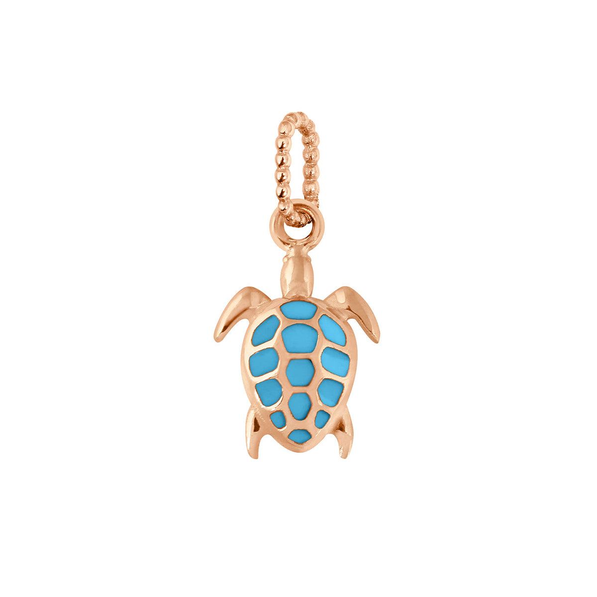 Pendentif Tortue résine turquoise gigi CLOZEAU en or rose 18 carats. Bélière perlée qui apporte de la délicatesse.