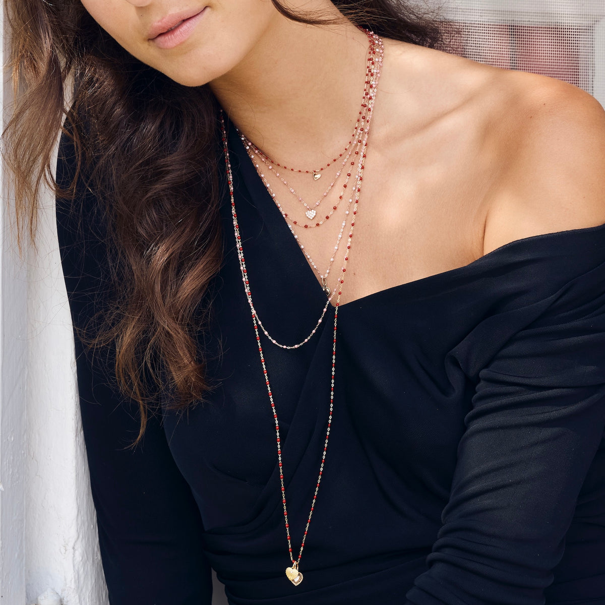 Gigi Clozeau - Sautoir coquelicot Classique Gigi, or rose, 86 cm