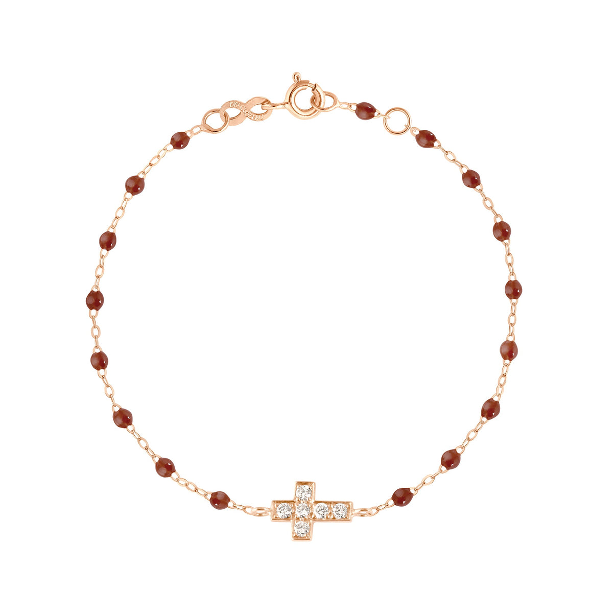 Cross Charm Classic Gigi Moka Diamond Bracelet, Rose Gold, 17 cm