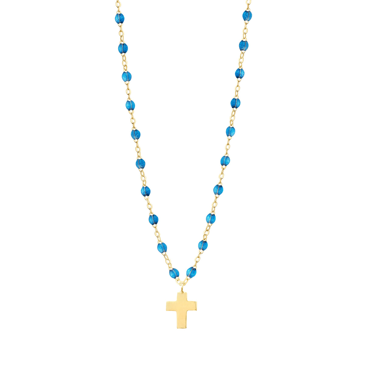 Gigi Clozeau - Collier azur Croix Classique Gigi, or jaune, 42 cm