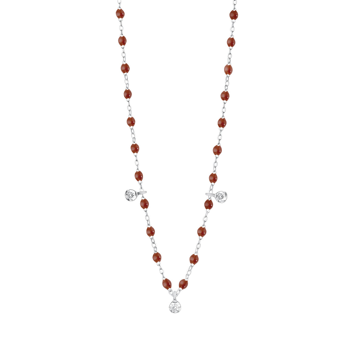 Gigi Clozeau - Collier moka Gigi Suprême, or blanc, 3 diamants, 45 cm