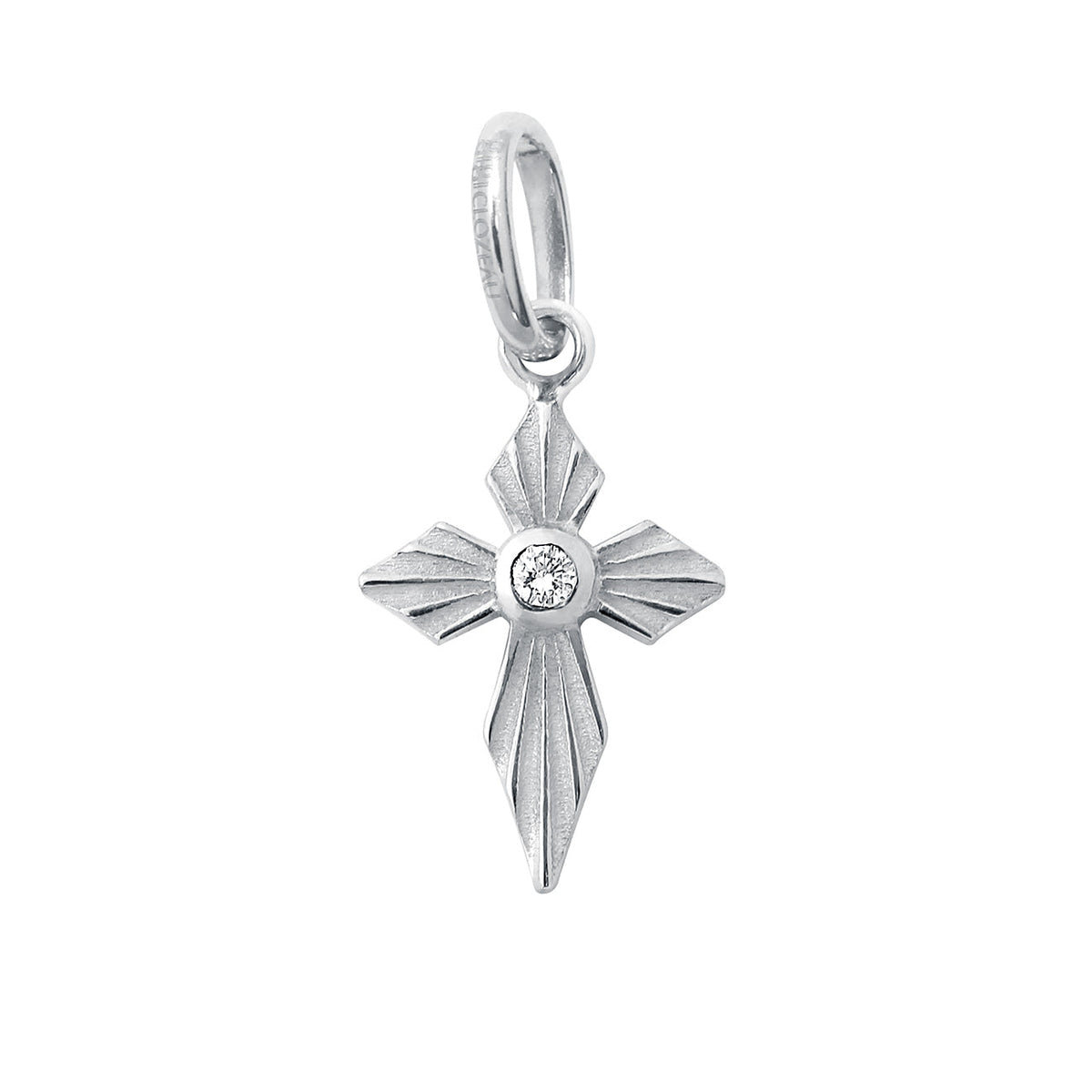 With gold and diamond, the croix lumière delicately adorns our neckline. The gigi Clozeau croix lumière pendant with 18 carat white gold and 1 diamond.